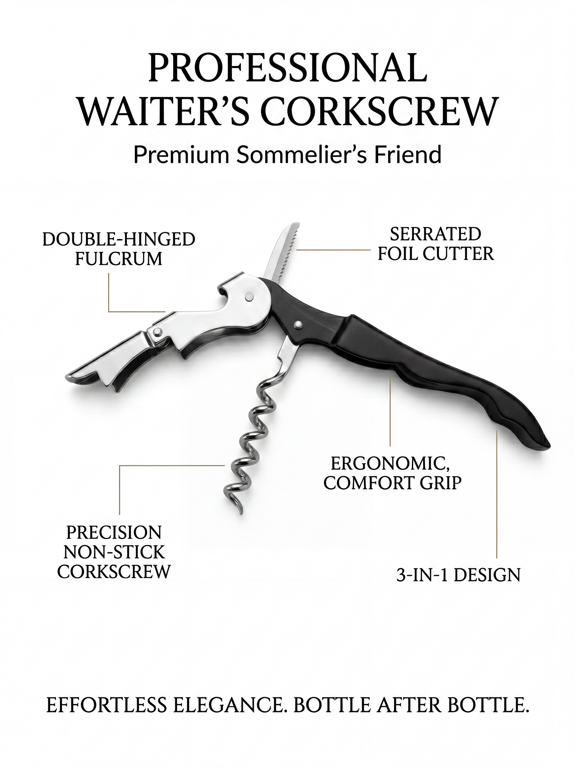 This classic waiters wine key is a versatile tool, perfect for any wine lover or hospitality professional. The customizable design makes it ideal for promotions or special events. With its sleek and practical design, it's a must-have for any wine enthusiast. Put your brand in your customers hands every time they open a bottle.